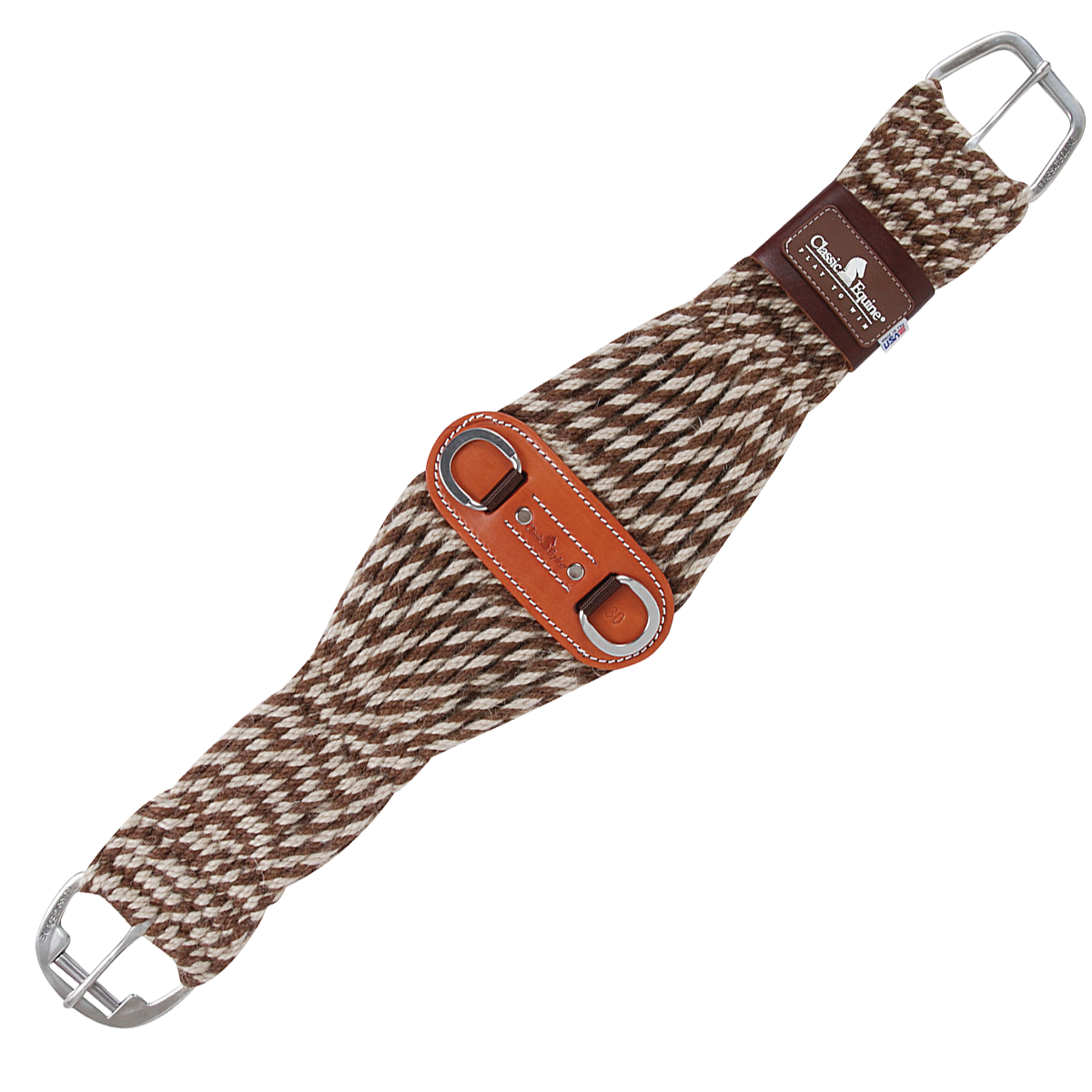 Unique color pattern with a vintage western style and design. 100% pure blend of mohair and alpaca fibers for long lasting softness and comfort. Naturally strong and durable, yet gives to encourage flexion and movement. Made with stainless steel hardware and one roller buckle for easy cinching.